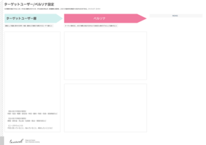 ターゲットユーザーとペルソナの設定ができるシートをご用意しています。ご自身で設計する際にご活用ください。 WEB以外の企画などにも応用できるかもしれません。さまざまな案件にご利用ください。