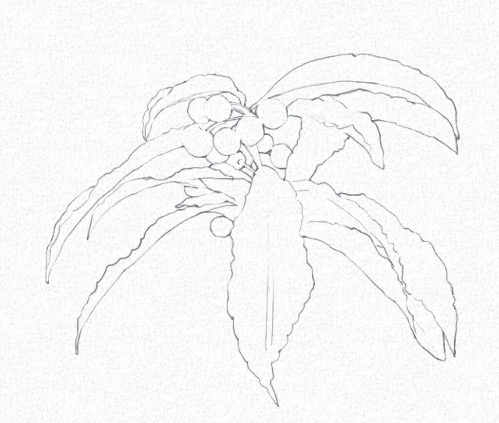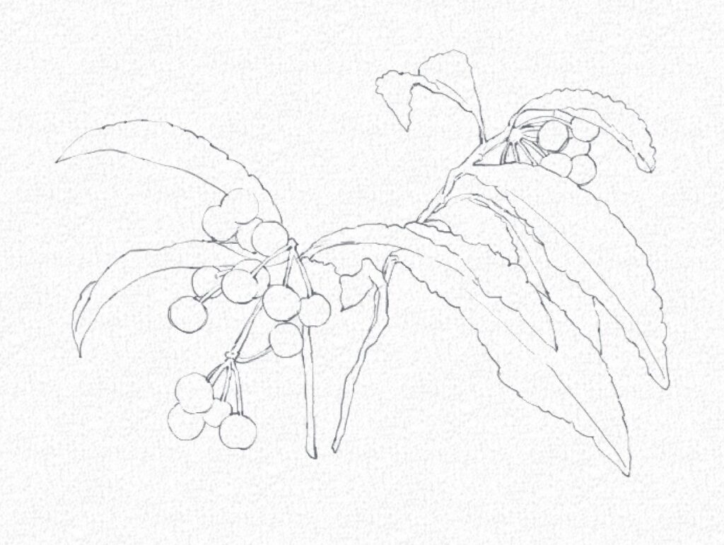 万両の実が可愛かったので、花瓶に生けてスケッチしました。
