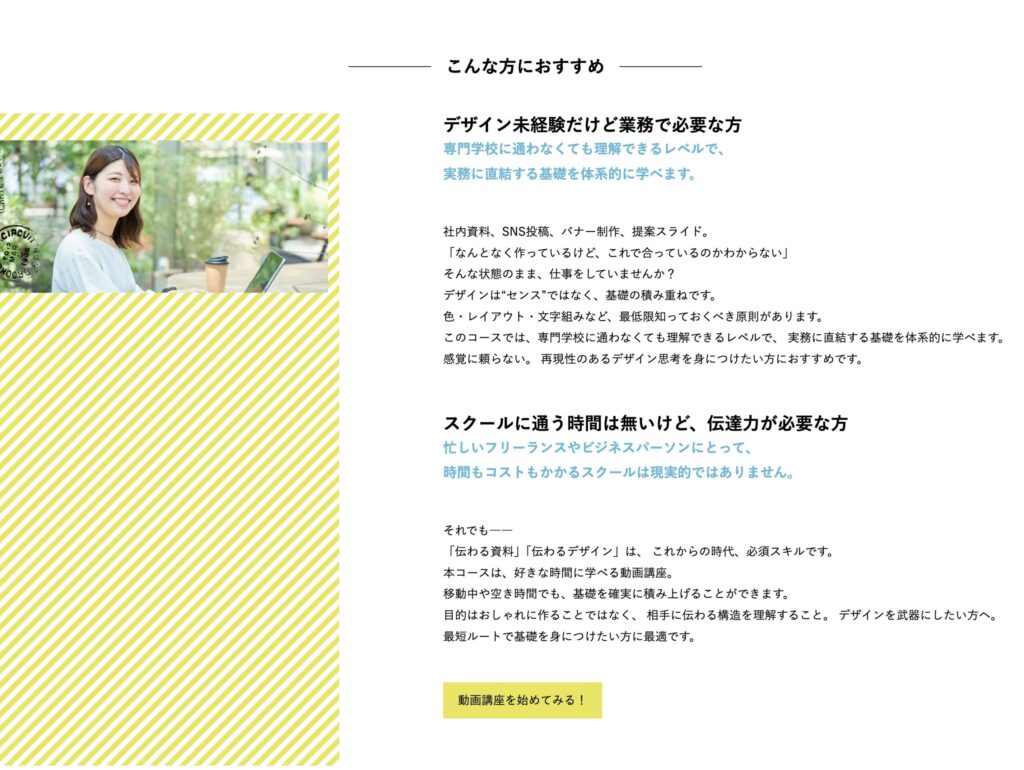 視覚的に情報が伝わるデザインの原理原則を、 約2時間の動画レッスンでお伝えします!