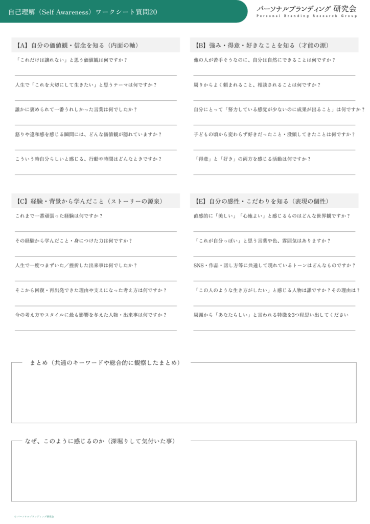 A. 自分の価値観・信念を知る(内面の軸)